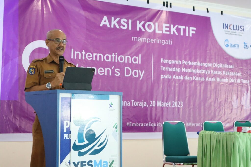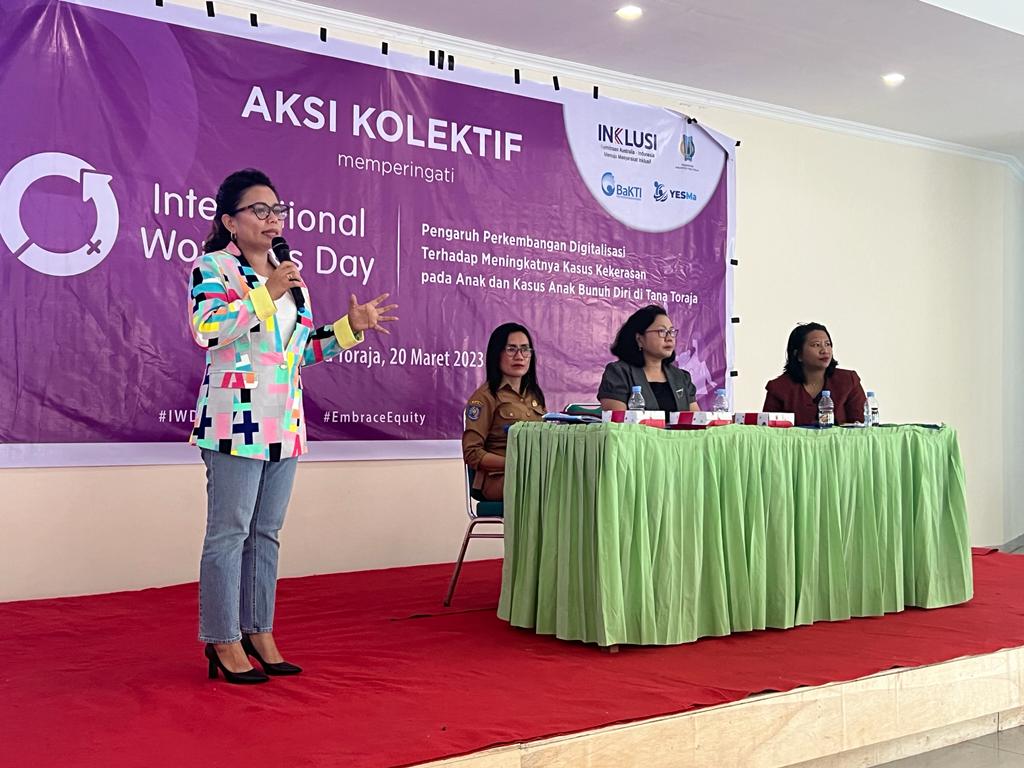 Toraja, Senin 20 Maret 2023 YESMa (Yayasan Eran Sangbure Mayang) melalui Program Kemitraan Australia-Indonesia Menuju masyarakat Inklusif (INKLUSI) melaksanakan talkshow untuk memperingati International Women’s Day (IWD) bertempat di Aula Perpustakaan Tana Toraja dengan tema ” Pengaruh Perkembangan Digitalisasi Terhadap Meningkatnya Kasus Kekerasan pada Anak dan Kasus Anak Bunuh Diri di Tana Toraja” kegiatan ini di buka secara resmi oleh Asisten II SETDA Tana Toraja Bapak Bonifacius P. Talkshow ini menghadirkan narasumber dari Psikiater (dr. Kristanty Randa Arung, M.Kes, Sp.KJ, FISQua, FIHFAA), Sosiolog yang juga sebagai anggota DPRD Tana Toraja bapak Dr. Kristian H.P Lambe S.T., M.M., M.SI, Dinas P3AP2KB ibu Emiliana Sappetau dan Konselor P2TP2A Pdt. Yudith R. S.Th. Pelaksanaan IWD melibatkan peserta dari Kelompok Konstituen dampingan YESMa, Media, Forum Anak, Pendidik dan peserta Didik, tokoh agama, tokoh pemuda, organisasi CSO dan DP3AP2KB Tana Toraja.